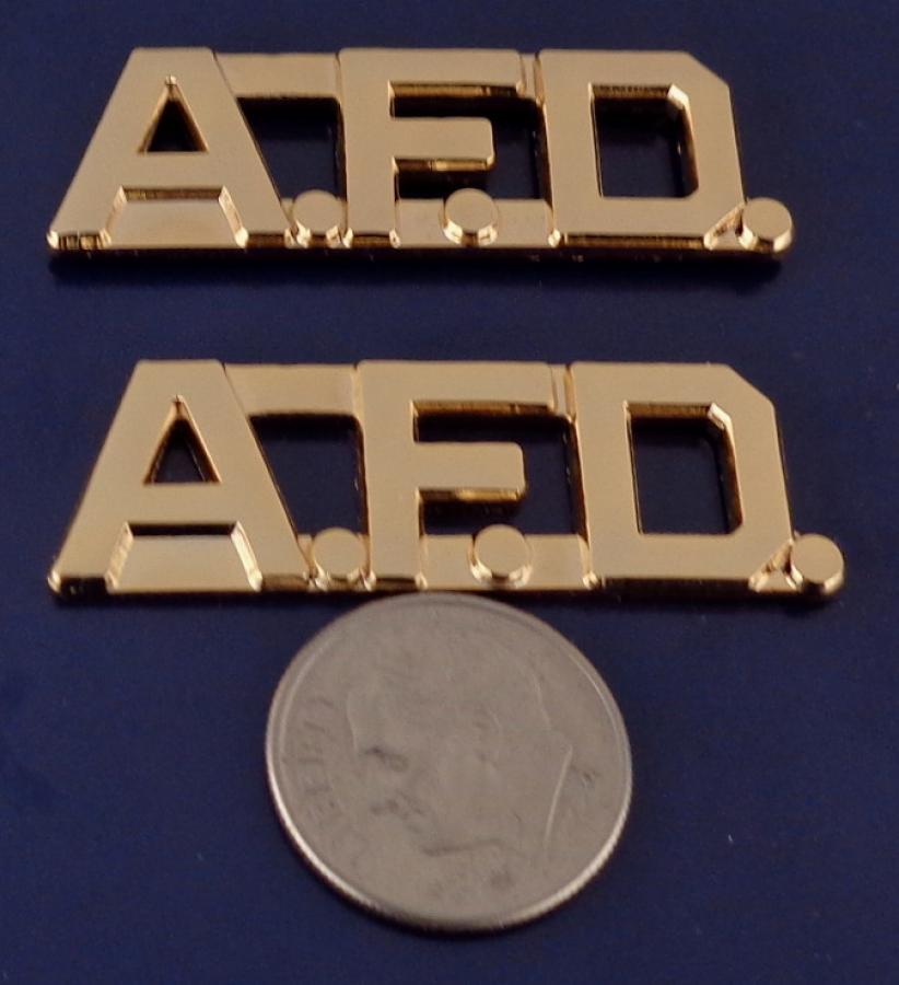 A.F.D. 1/2" Polished Gold Collar Pins with periods
