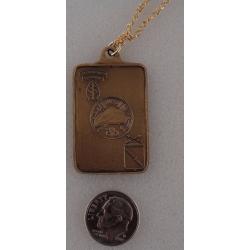 Pendant measures 1 5/8" high by 15/16" wide as shown and has a 24" chain attached.