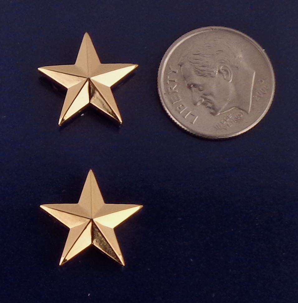 2 Stars 5/8" Corrugated Gold Collar Pins